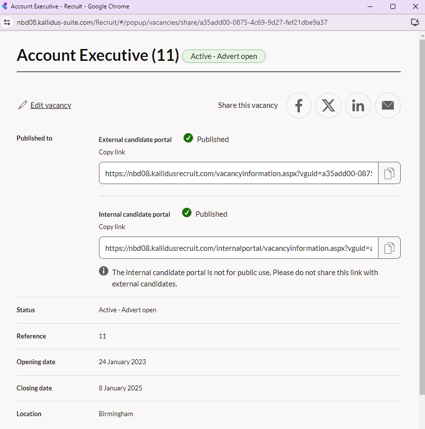 This article aims to offer guidance on what controls visibility of vacancies on the Kallidus candidate portal. The options described will also typically affect whether or not your roles are included in feeds to job boards etc. as well.