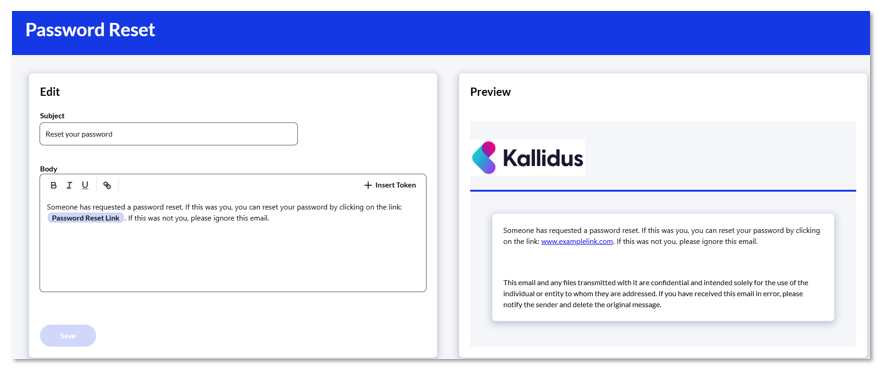 - Edit the text and tokens within the email. Be sure to include all the information your users need.