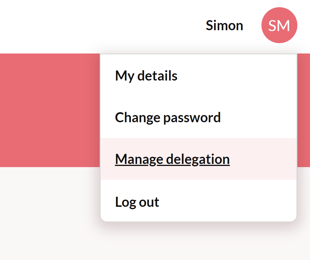 - Click the Manage delegation option from menu at the top right of the screen