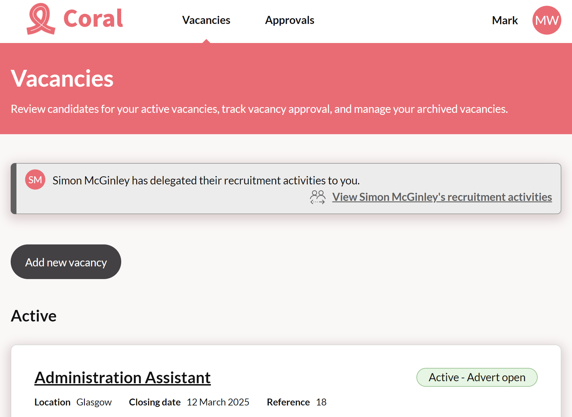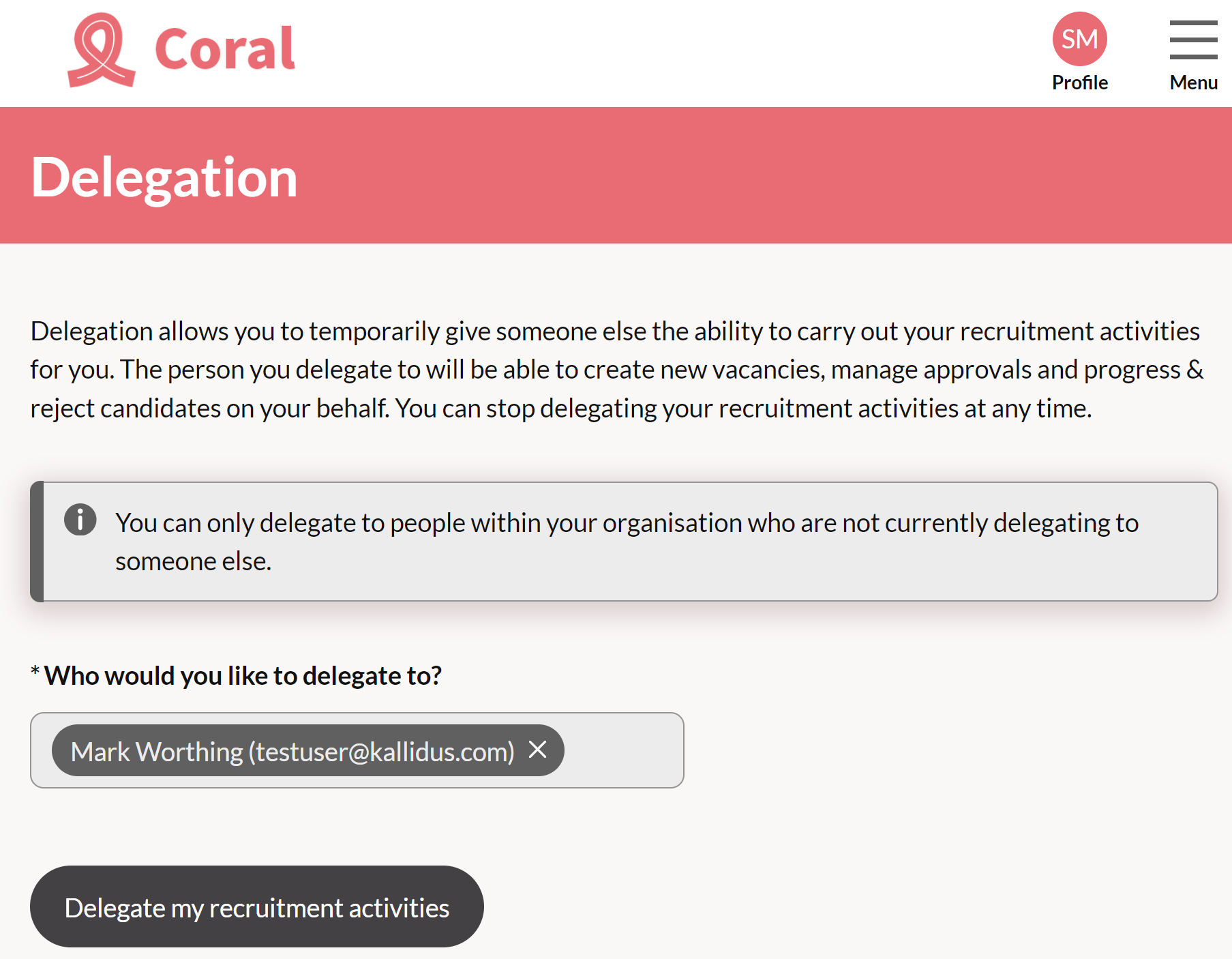 - Click Delegate my recruitment activities