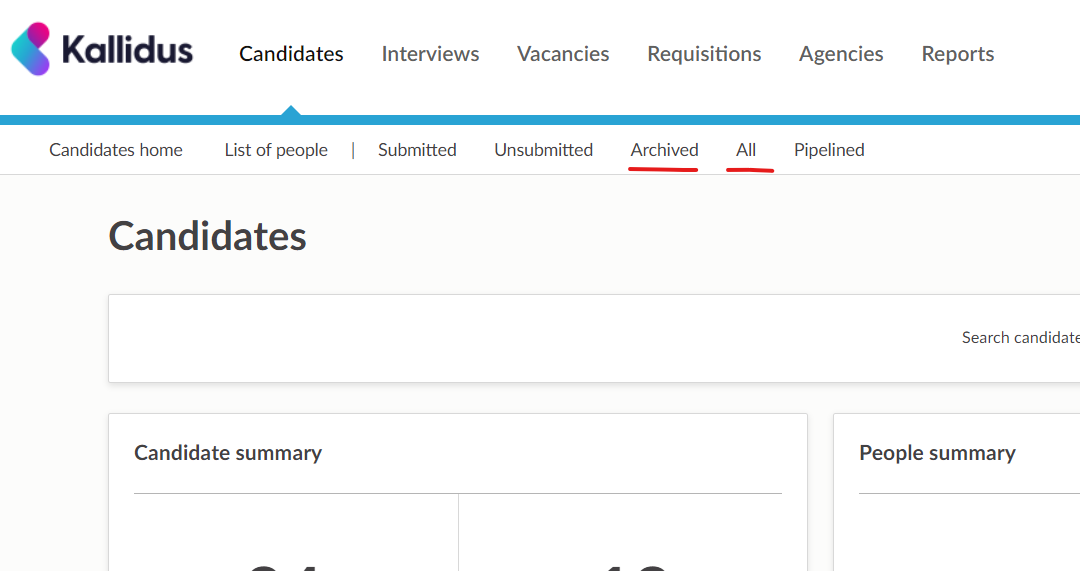 If necessary, you can move candidates out of archived status by simply changing the vacancy back to 'Closed' status.