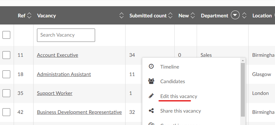 4) Choose Edit this vacancy from your options menu