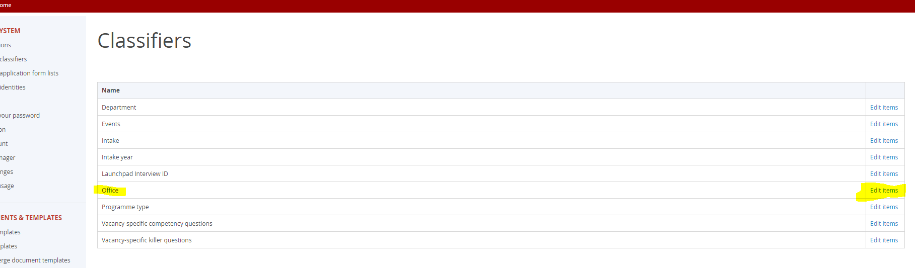 Click on 'edit items' and find the Office you wish to edit. Click on 'Edit Item'
