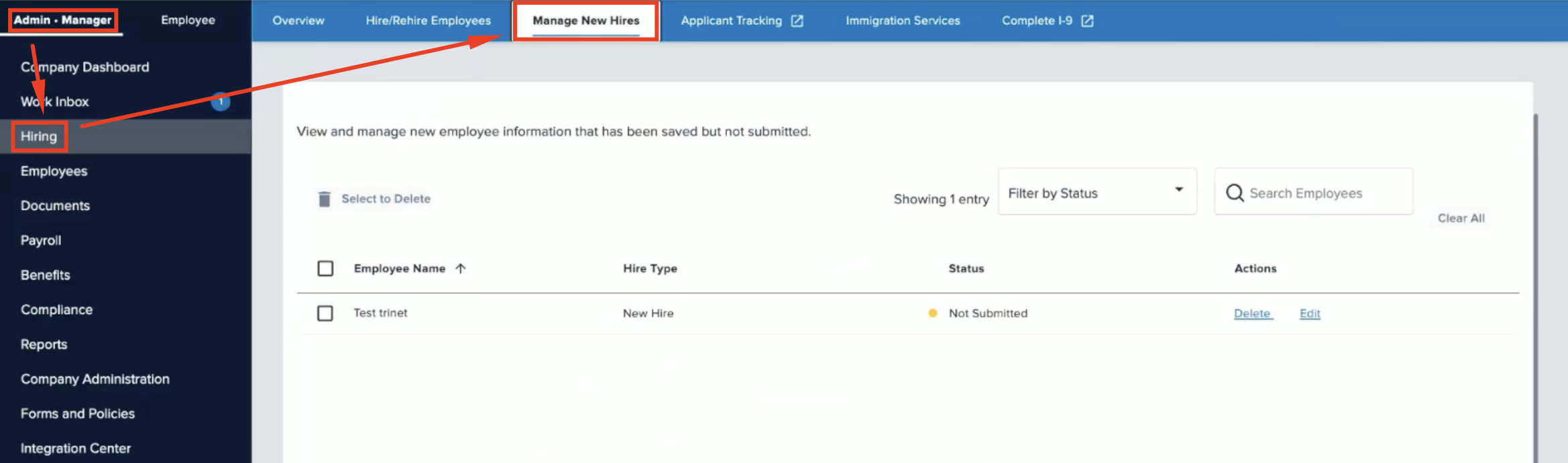 - Once you fully onboard the new hire in Trinet, they will then be invited to Trinet based on your company settings in Trinet