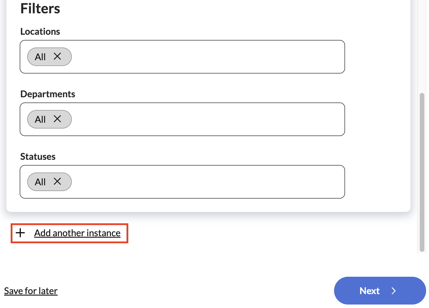 - Specify which Location, Department, and Employment Statuses the integration applies to