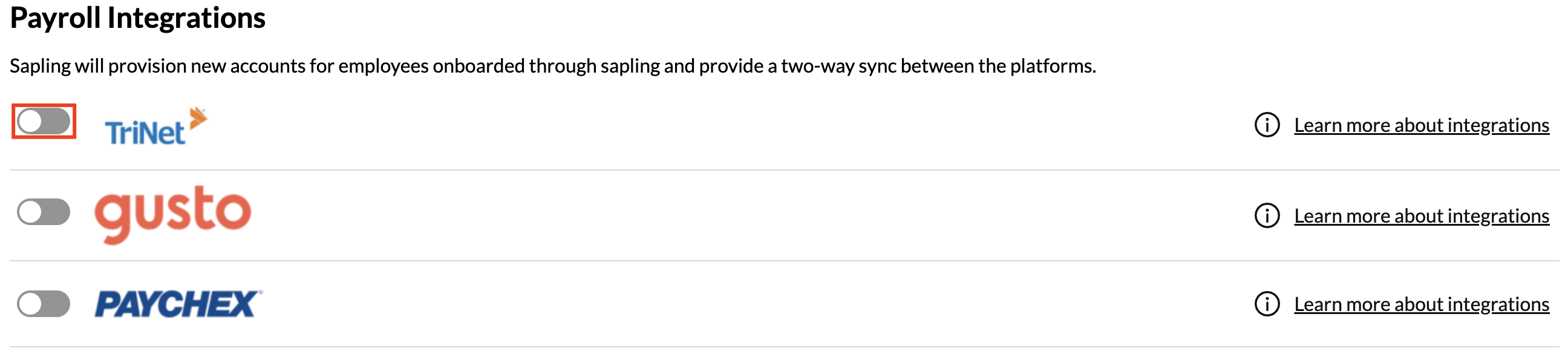 With the Trinet integration, Sapling will: