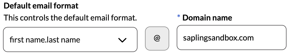 - For user provisioning in OneLogin, simply use the updated domain in Sapling when specifying company emails for new hires going forward. If Default Email Format is enabled under Sapling Platform Settings, you'll need to update the domain name.