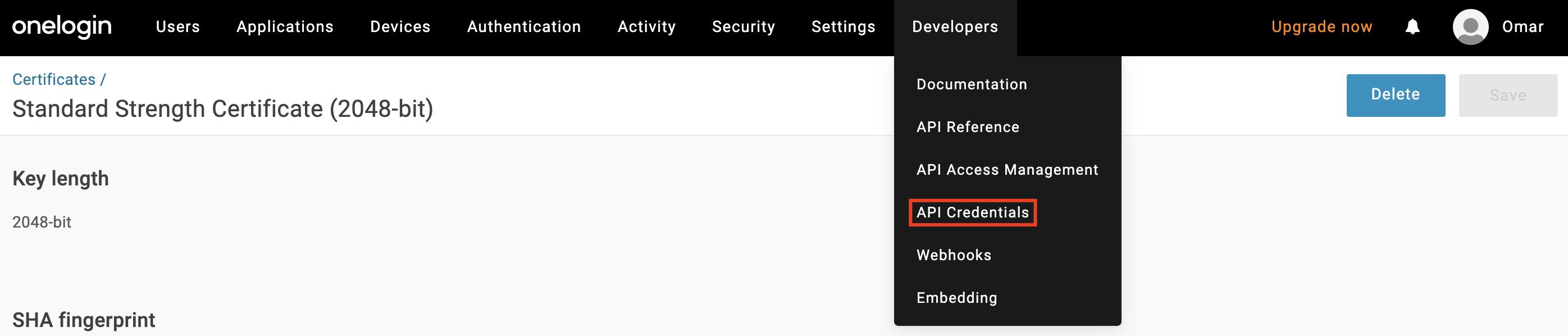 Part 2: Create API credentials in OneLogin to enable user provisioning and update functionalities (optional)