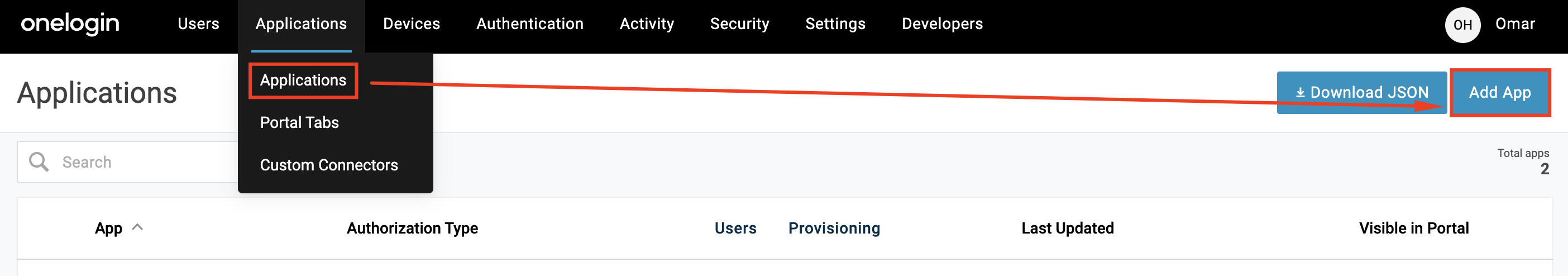 - Under your Administration page, navigate to Applications and click "Add App"
