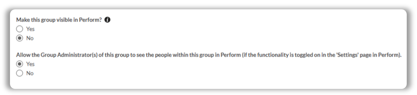 Allow Group Administrators of this Group to see the people within this group in Perform
