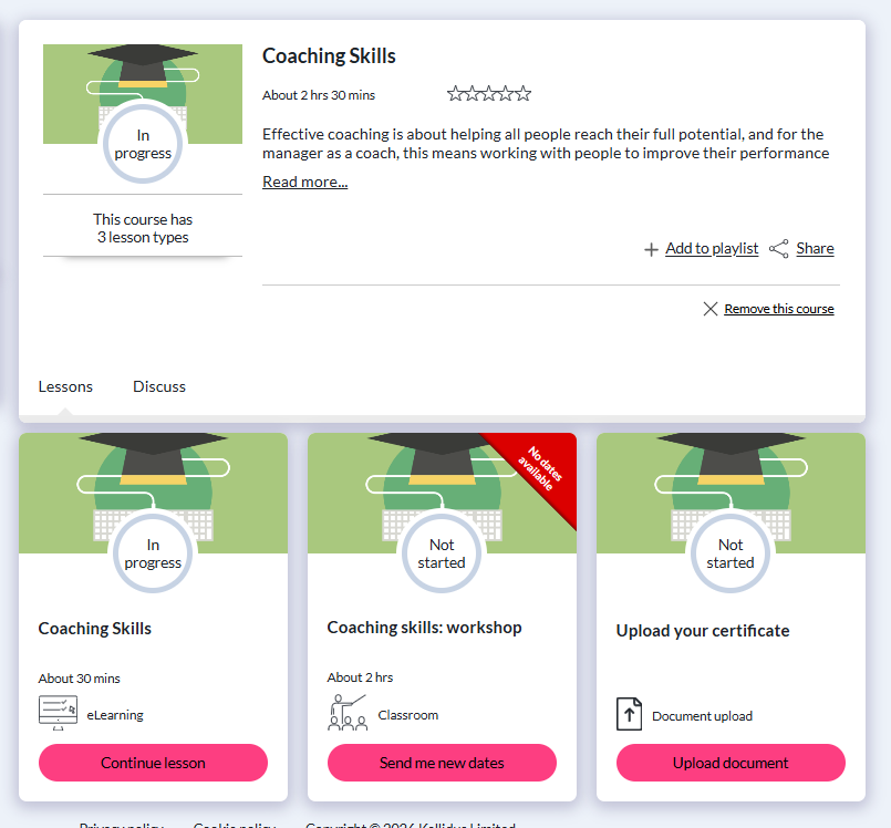 Catalogues make it easy to organise learning opportunities around specific themes, initiatives, or campaigns; for example, Leadership Development, Wellbeing & Mental Health, or Learning at Work Week.