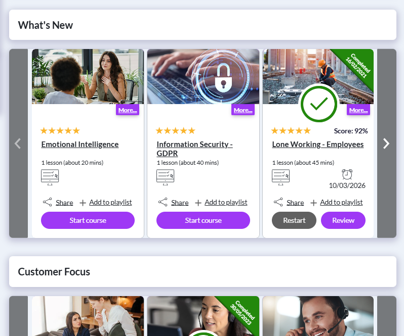 - Onboarding programmes - select lessons based on role-specific requirements