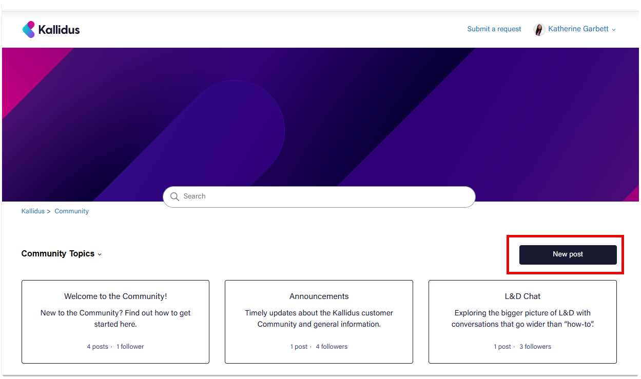 Select new post and give it a title. Make sure you select a relevant topic to share it in and click submit. Once our team has reviewed it, it will be shared for others to comment on.