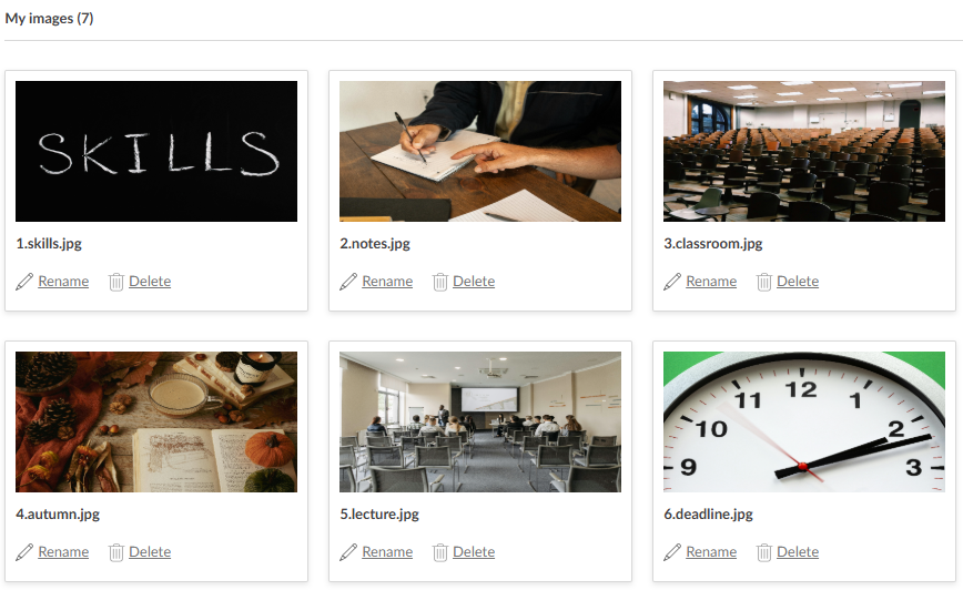 - Upload the images into the image library. Go to Settings > My Images > Choose images.Â